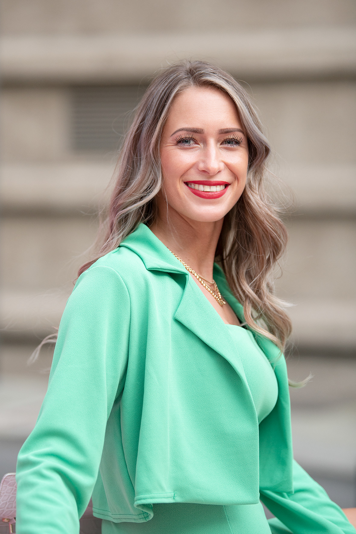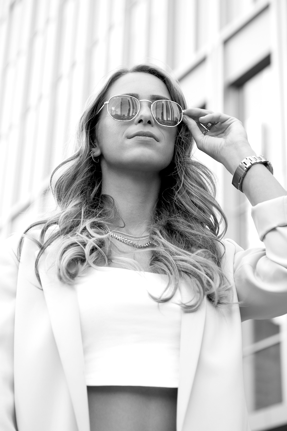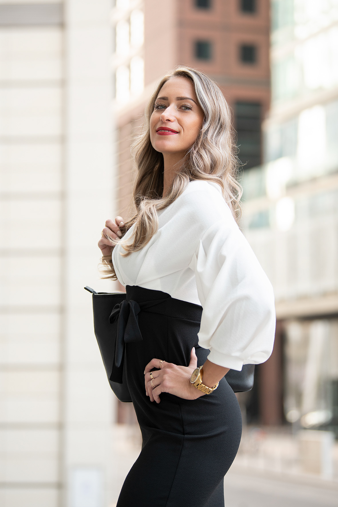 Nicole Petrovic in der Nähe des Japan Towers in Frankfurt / Main City